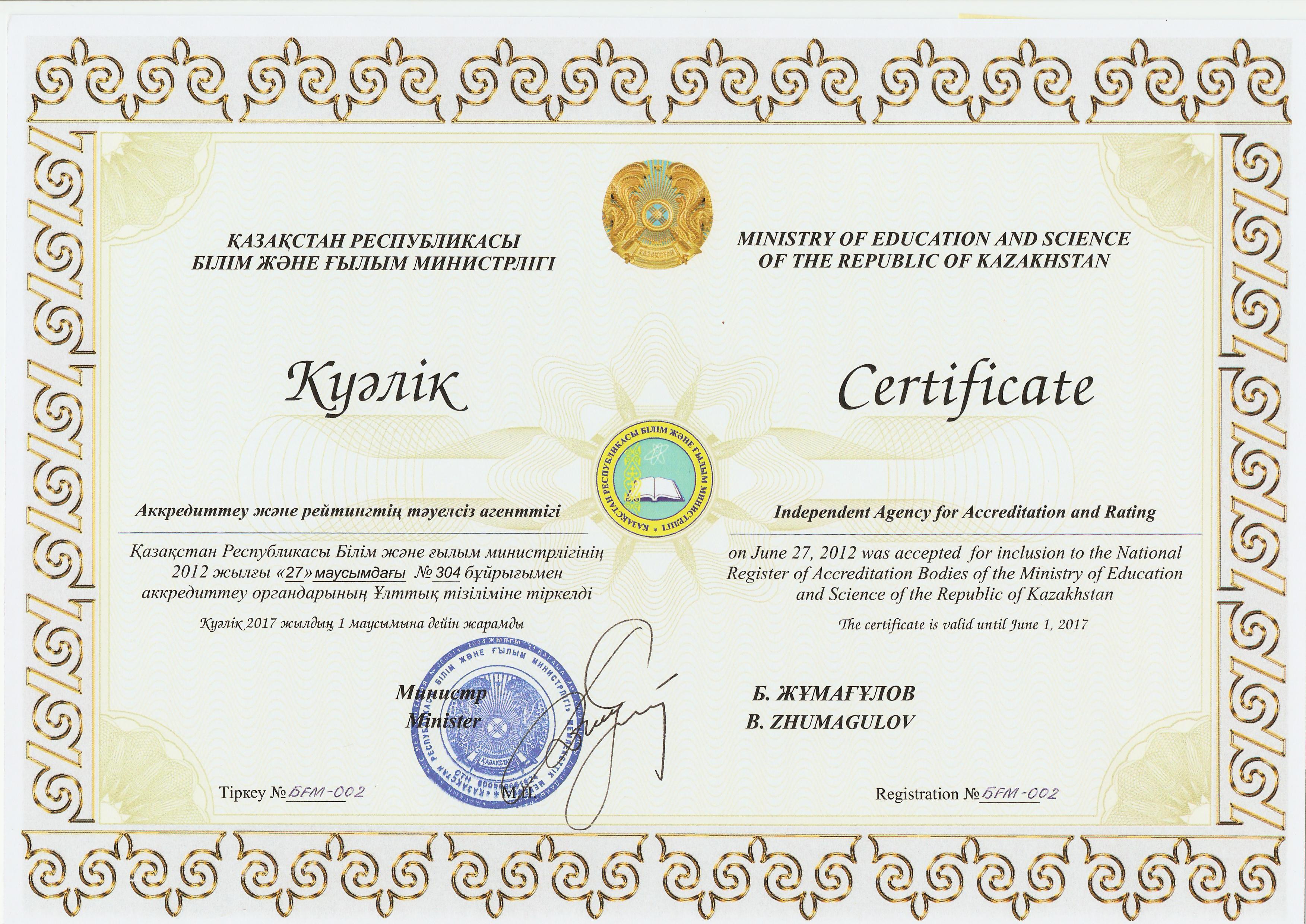 Membership Type: Full Email: iaar@iaar.kz Year in which Organisation/Agency commenced operations: 2011 Countries/regions/states of operation: Kazakhstan Chief Executive Officer (CEO) Title: Dr. First Name: Alina Surname: Zhumagulova Job Title: Director Phone: +7(7172) 76-85-59, +7 (7172) 76-85-60, +7(7172) 76-85-59 Fax: +7 (7172) 76-85-60 Email Id: zh-alina1982@mail.ru Nominated Contact Person (if different from CEO) Title: Dr. First Name: Timur Surname: Kanapyanov Job Title: Manager of International Projects and Public Relations Email Id: timur@iaar.kz Organisation Details Independent Agency for Accreditation and Rating (IAAR) Address: Republic of Kazakhstan, Nur-Sultan city, Baurzhan Momyshuly avenue 2, EP-4G Kazakhstan Website: www.iaar.agency Additional Contacts Criteria Requirements for Full Member1 Criterion: Nature of the operations of the agency: Measure: The agency is responsible for reviews at institutional or programme level of post-secondary education institutions or post-secondary quality assurance agencies Description: Applicable Only For Full Members 2 Criterion: Mission statement and objectives: Measure: The agency has formulated a mission statement and objectives which are consistent with the nature of the agency Description: Applicable Only For Full Members 3 Criterion: Agency staff, Numbers, Profile, Roles: Measure: The profile of the staff is consistent with the Mission Statement Description: Applicable Only For Full Members 4 Criterion: Profile of reviewers: Measure: The profile of the reviewers is consistent with the Mission Statement Description: Applicable Only For Full Members 5 Criterion: Independence: Measure: The judgements and recommendations of the agency’s reports cannot be changed by third parties Description: Applicable Only For Full Members 6 Criterion: Resources: Measure: The agency has sufficient resources to run its operations in accordance with its mission statement and objectives Description: Applicable Only For Full Members 7 Criterion: External quality assurance criteria and processes: Measure: The description of the processes and criteria applied should be transparent and publicly available and normally include: self evaluation, site visit, public report and follow-up measure Description: Applicable Only For Full Members 8 Criterion: Quality assurance: Measure: The description of the processes and criteria applied should be transparent and publicly available and normally include: self evaluation, site visit, public report and follow-up measure Description: Applicable Only For Full Members Criteria Requirements for Institutional MemberInstitutional Member Criteria: Measure: Institutional Members are institutions of higher education in the region that are in good standing with the relevant quality assurance agency if one exists. Proof of recognition as a Higher Education Institution: Applicable Only For Institutional Members Proof of the organisation’s good standing with the local QA agency: Applicable Only For Institutional Members Criteria Requirements for Associate MemberAssociate Member Criteria: Measure:Associate Members are organisations with a major interest and active involvement in evaluation, accreditation and quality assurance in higher education, but without the responsibility for assuring the quality of institutions, education programs, or external quality assurance agencies Applicable Only For Associate Members Criteria Requirements for Intermediate Member1 Criterion: Nature of the operations of the agency: Measure: The agency is responsible for reviews at institutional or programme level of post-secondary education institutions or post-secondary quality assurance agencies Description: The IAAR is is a nonprofit organization which has a status of a legal body, created to improve the competitiveness of higher education institutions, also technical and professional organizations of the Republic of Kazakhstan on national and international levels by conducting the procedures of accreditation and academic rankings. We are pleased to inform you that According to the Decree of the Ministry of Education and Science of the Republic of Kazakhstan from June 27, 2012 IAAR was accepted for inclusion to the National Register of Accreditation Bodies of the Ministry of Education and Science of the Republic of Kazakhstan. Certificate issued by the Ministry of Education and Science of the Republic of Kazakhstan confirms the right of the IAAR to participate in the national educational process. Also we would like to inform you that the IAAR was created in 2011. And we are new agency and for now we are working on the accreditation and reviews of the HEIs in Kazakhstan. Due to the fact that we in the process of working we do not yet have documents such as annual reports and reviews, but let me assure you that when these documents will be ready, we will immediately provide you with the documents. 2 Criterion: Mission statement and objectives: Measure: The agency has formulated a mission statement and objectives which are consistent with the nature of the agency IAAR Strategic plan for 2012-2015 In brief Vision Developed culture of quality in higher education of Kazakhstan Mission Advancement of competitiveness of higher education institutions on national and international level through accreditation and academic ranking Goals â?¢ System of quality assurance o Elaboration and regular revision of standards and criteria for institutional and specialized accreditation and ranking methodology o Elaboration of instruments of quality assessment in higher education institutions o Elaboration and enhancement of mechanisms ensuring objectivity in quality assessment in higher education institutions â?¢ Organization of accreditation and ranking processes â?¢ Transmission of objective quality assessment results in higher education to society and stakeholders o Provision of information about the results of accreditation and ranking o Information of society and 