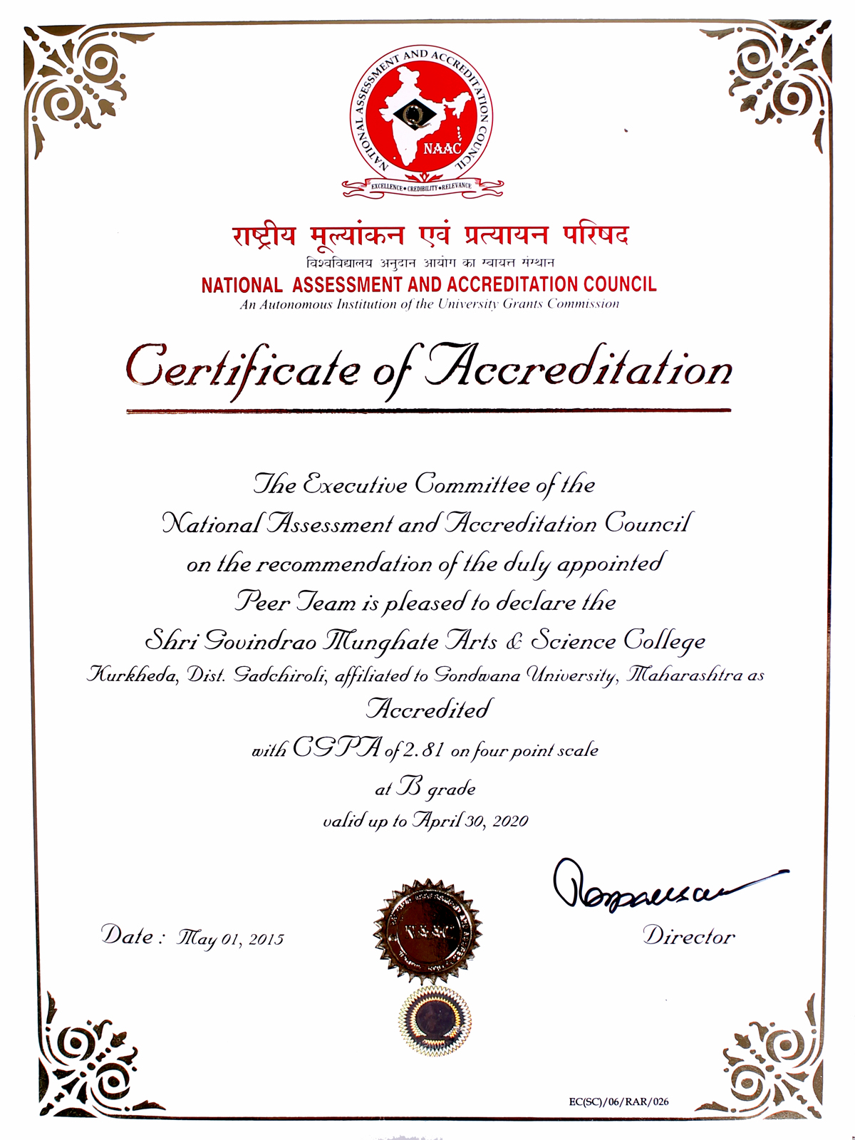 Membership Type: Institutional Email: munghaterajur@rediffmail.com Year in which Organisation/Agency commenced operations: 1990 Countries/regions/states of operation: India State Maharashtra, Region Vidharbha Chief Executive Officer (CEO) Title: Dr First Name: raju Surname: munghate Job Title: Principal Phone: +918956262263 Fax: 07139245475 Email Id: munghaterajur@rediffmail.com Alternative Email Id: munghaterajur@rediffmail.com Nominated Contact Person (if different from CEO) Title: Dr First Name: raju Surname: munghate Job Title: Principal Phone: +918956262263 Fax: +918956262263 Email Id: munghaterajur@rediffmail.com Alternative Email Id: vidyakurkheda@rediffmail.com Organisation Details Shri. Govindrao Munghate Arts & Science College Address: At post Kurkheda, dist Gadchiroli, maharastra 441209 India Website: http://sgmunghatecollege.org Additional Contacts Criteria Requirements for Full Member1 Criterion: Nature of the operations of the agency: Measure: The agency is responsible for reviews at institutional or programme level of post-secondary education institutions or post-secondary quality assurance agencies 2 Criterion: Mission statement and objectives: Measure: The agency has formulated a mission statement and objectives which are consistent with the nature of the agency 3 Criterion: Agency staff, Numbers, Profile, Roles: Measure: The profile of the staff is consistent with the Mission Statement 4 Criterion: Profile of reviewers: Measure: The profile of the reviewers is consistent with the Mission Statement 5 Criterion: Independence: Measure: The judgements and recommendations of the agency’s reports cannot be changed by third parties 6 Criterion: Resources: Measure: The agency has sufficient resources to run its operations in accordance with its mission statement and objectives 7 Criterion: External quality assurance criteria and processes: Measure: The description of the processes and criteria applied should be transparent and publicly available and normally include: self evaluation, site visit, public report and follow-up measure 8 Criterion: Quality assurance: Measure: The description of the processes and criteria applied should be transparent and publicly available and normally include: self evaluation, site visit, public report and follow-up measure Criteria Requirements for Institutional MemberInstitutional Member Criteria: Measure: Institutional Members are institutions of higher education in the region that are in good standing with the relevant quality assurance agency if one exists. Proof of recognition as a Higher Education Institution: 1. Attend APQO International Conference conducted annually in different countries at the same time touch base with co-professionals and experts in the field of quality with special discount. 2.Exchange of information facilities, technical data and best practices between members or member organization. 3.Avail of different training courses on quality conducted regularly in different countries with special discount. 4.Participate actively in projects for the improvement of quality in the region. Documents Upload: Download '1_12x16_1.jpg' Criteria Requirements for Associate MemberAssociate Member Criteria: Measure:Associate Members are organisations with a major interest and active involvement in evaluation, accreditation and quality assurance in higher education, but without the responsibility for assuring the quality of institutions, education programs, or external quality assurance agencies Criteria Requirements for Intermediate Member1 Criterion: Nature of the operations of the agency: Measure: The agency is responsible for reviews at institutional or programme level of post-secondary education institutions or post-secondary quality assurance agencies 2 Criterion: Mission statement and objectives: Measure: The agency has formulated a mission statement and objectives which are consistent with the nature of the agency 3 Criterion: : Proof of the organisation’s good standing with the local QA agency Criteria Requirements for ObserverCriterion For Observers: Measure: APQN accepts as Observers organisations outside the Asia-Pacific region, including: external quality assurance agencies; institutions with a major interest in evaluation, accreditation and quality assurance in higher education; other regional networks that have major interests in and strong links with the region Documentation and Fees Additional Information: I will be emailing and posting additional supporting information Upon approval of my application I agree to pay: